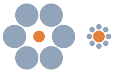 For example, in an optical illusion, our mind uses context to fill in gaps and see things a certain way. It is only the blue circles around the orange circle that make us believe the orange circles are different sizes. They are actually the same size.